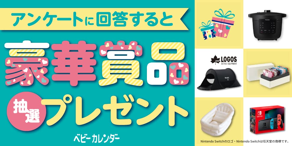 妊娠してから子どもが1歳を迎えるまでの毎日の情報を提供するサイトを運営するベビーカレンダーでは、アンケートに回答すると抽選で豪華賞品から好きなアイテムをもらえるチャンスが。