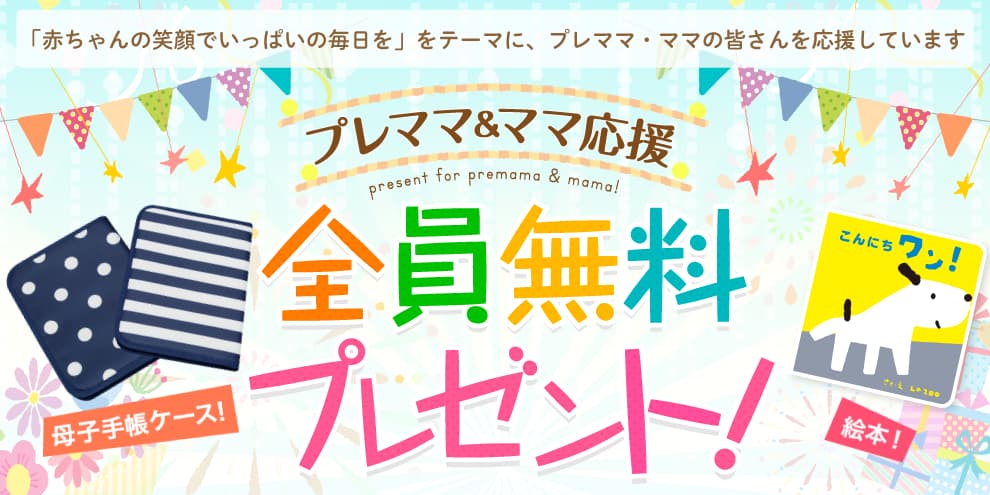 妊婦(プレママ)には、ドット柄とボーダー柄から選べる「母子手帳ケース」を、0歳児ママには、ライオンやカバなどの動きが子どもに人気の「動物しかけ絵本」が無料でプレゼントされます。それぞれ1回ずつ申し込みが可能なので、出産前に忘れず申し込んでみて。