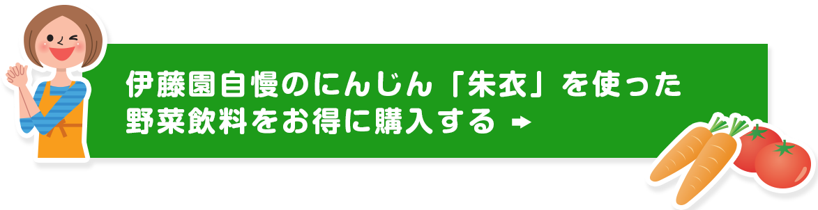 伊藤園が、野菜飲料に好適な味わいと栄養価があるのはどの品種か、約50品種から厳選。長年にわたる比較栽培、加工評価の末、たどりついたのが「朱衣(しゅい)」です。中心までしっかり濃いオレンジ色をしている特徴を持つ「朱衣」は、健康や美容に役立つといわれる成分「β-カロテン」が一般のにんじんに比べ約1.5倍(※1)も含まれています。
