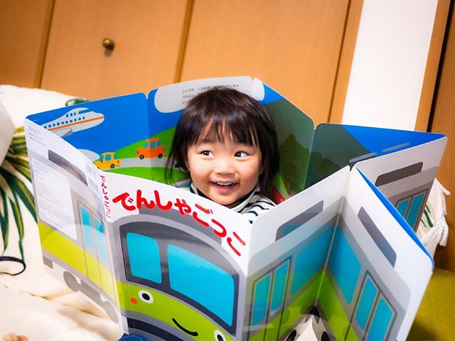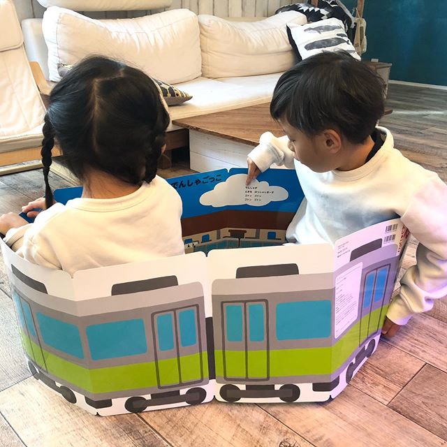 絵本をひらいて中に入って読んだり、でんしゃごっこをして楽しむこともできますし、とっても面白い絵本です💖