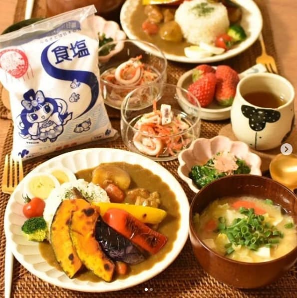 食事づくりに欠かせない調味料といえばお塩。日本国内の海水からつくられる「食塩」を使って、ママたちに得意料理や家族の大好物をつくってもらいました! 定番の塩おにぎりも、シンプルなものからキャラクターおにぎりまで。ママたちの愛情たっぷりのおいしそうな報告が届きました!