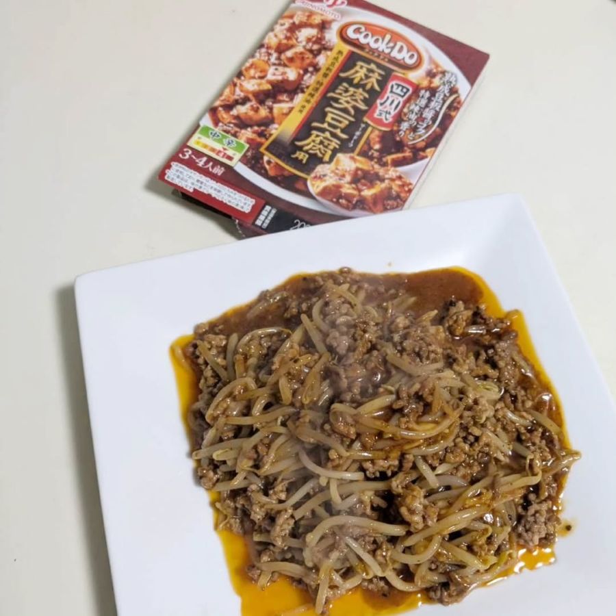 いつもの麻婆豆腐がモヤシでかさ増しされ、ニンニクとチーズでガッツリ感が増すので、我が家の男子たちがガツガツ食べてくれました。