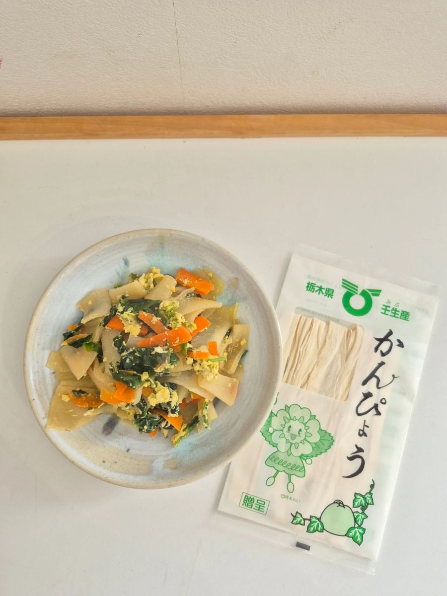 かんぴょうは夕顔(ユウガオ)の果肉を 乾燥かんぴょうには食物繊維が30.1g/100gに加え 低カロリーなので かんぴょうは栃木県の名産品🙌🏻 ✔️ かんぴょう炊き込みご飯 ✔️かんぴょう入り卵焼き ✔️生ハムかんぴょうサラダ お料理で使用したかんぴょうはいずれも 栄養豊富でアレンジしやすいかんぴょう