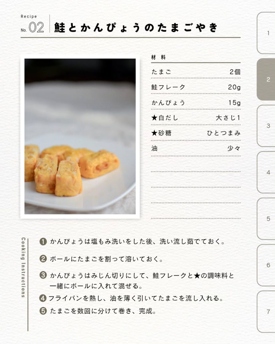 <レシピ7>鮭フレークとかんぴょうのたまごやき/新玉ねぎとハムのかんぴょうサラダ