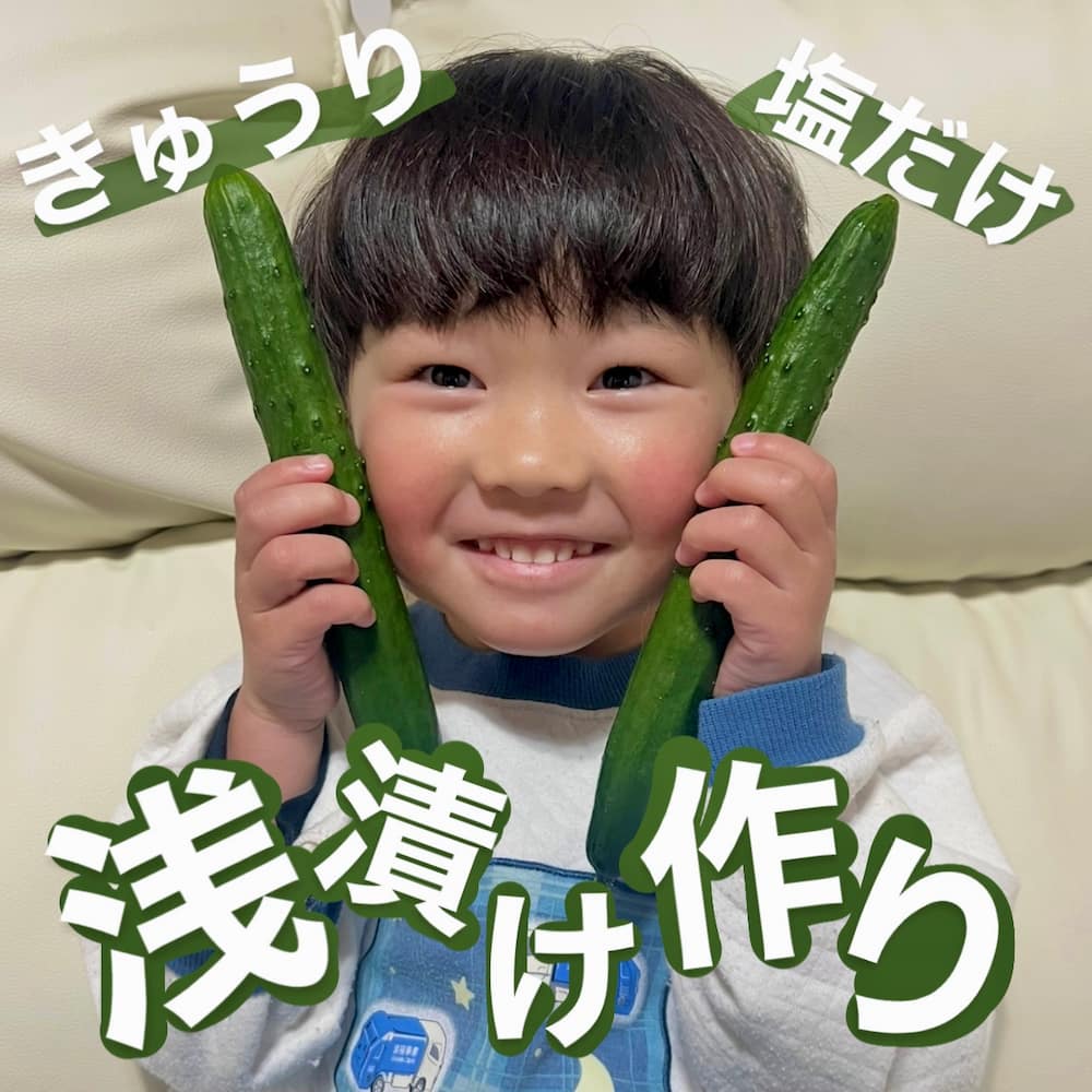 \ 4歳児、浅漬け作りデビュー /🥒✨ 今まではホットケーキ作りやクッキー作りなどを息子に手伝ってもらってたけど、今回はじめて”浅漬け”作りに挑戦! きゅうりを切って塩を入れて、シャカシャカ振るだけでできちゃうの♪ 漬けている間「まだかな~?」「もうできた??」って 完成して食べてみると、いつもと違うきゅうりにビックリした様子.ᐟ.ᐟ👦 食べるペースがあがっていって、大喜びで食べてくれたのママもうれしかった🤭 漬けることで野菜が食べやすくなったり 毎日食べるからこそ、これからも食に関心を持っていってほしいな♪