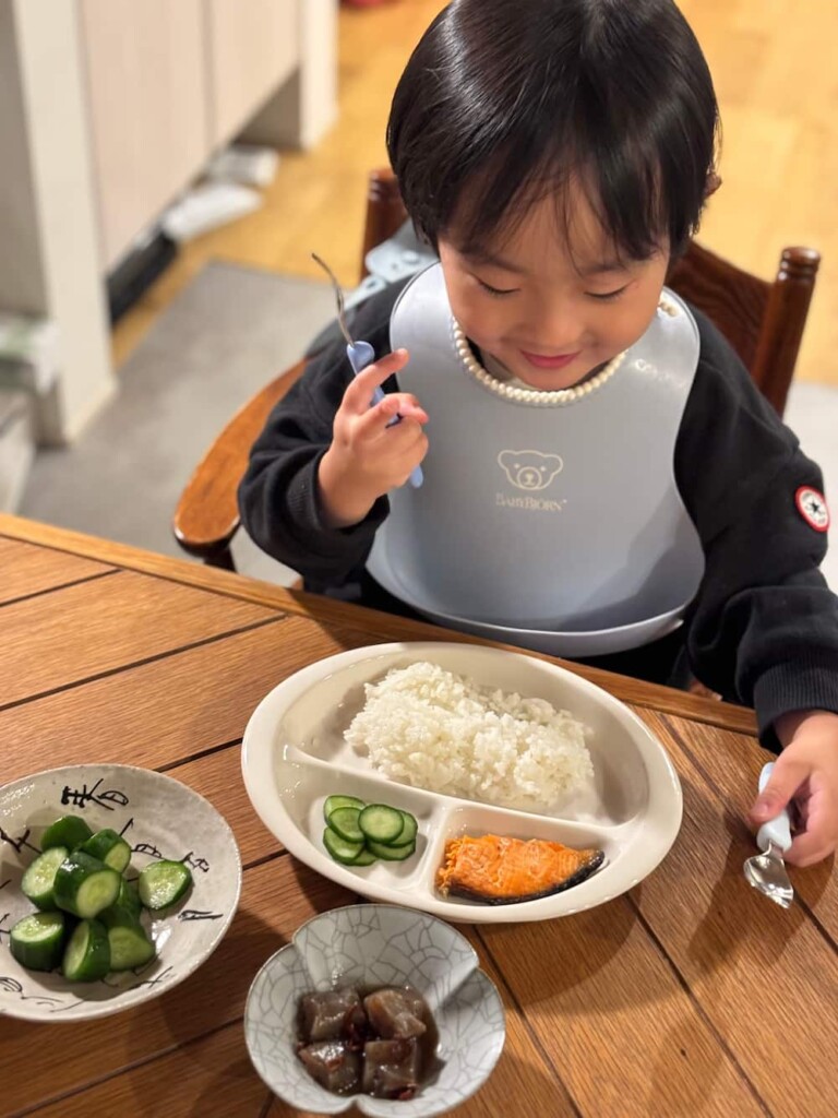 きゅうりと塩だけでつくる浅漬け🥒✨ 「なんで水が出てくるの?」 塩を入れるときゅうりから水が出てくることや、塩の量で味が変わることも一緒に話してみたら、娘なりにちゃんと考えてる感じがあって、これが“食育”なんだなぁって実感しました。 普段はちょっと野菜が苦手な娘だけど、「じぶんでつくった!」っていう気持ちがあるからか、この浅漬けは頑張って食べていて🥹💖 材料はきゅうりと塩だけなのに、一緒に作るだけでこんなに学びがあるんだなぁと。