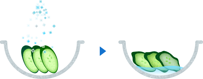 きゅうりを切って、塩を入れて振るだけで浅漬けができるのは塩の「脱水作用」によります。