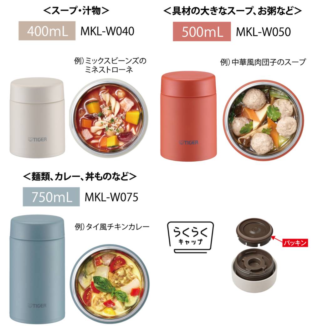 タイガー魔法瓶の「真空断熱フードジャーMKL-W」は、お料理の温度をキープして持ち運べる便利なアイテム。真空断熱構造で保温・保冷力にすぐれているので、温かいスープはもちろん、アイスクリームだって溶けずに持って行けるのがすごい!