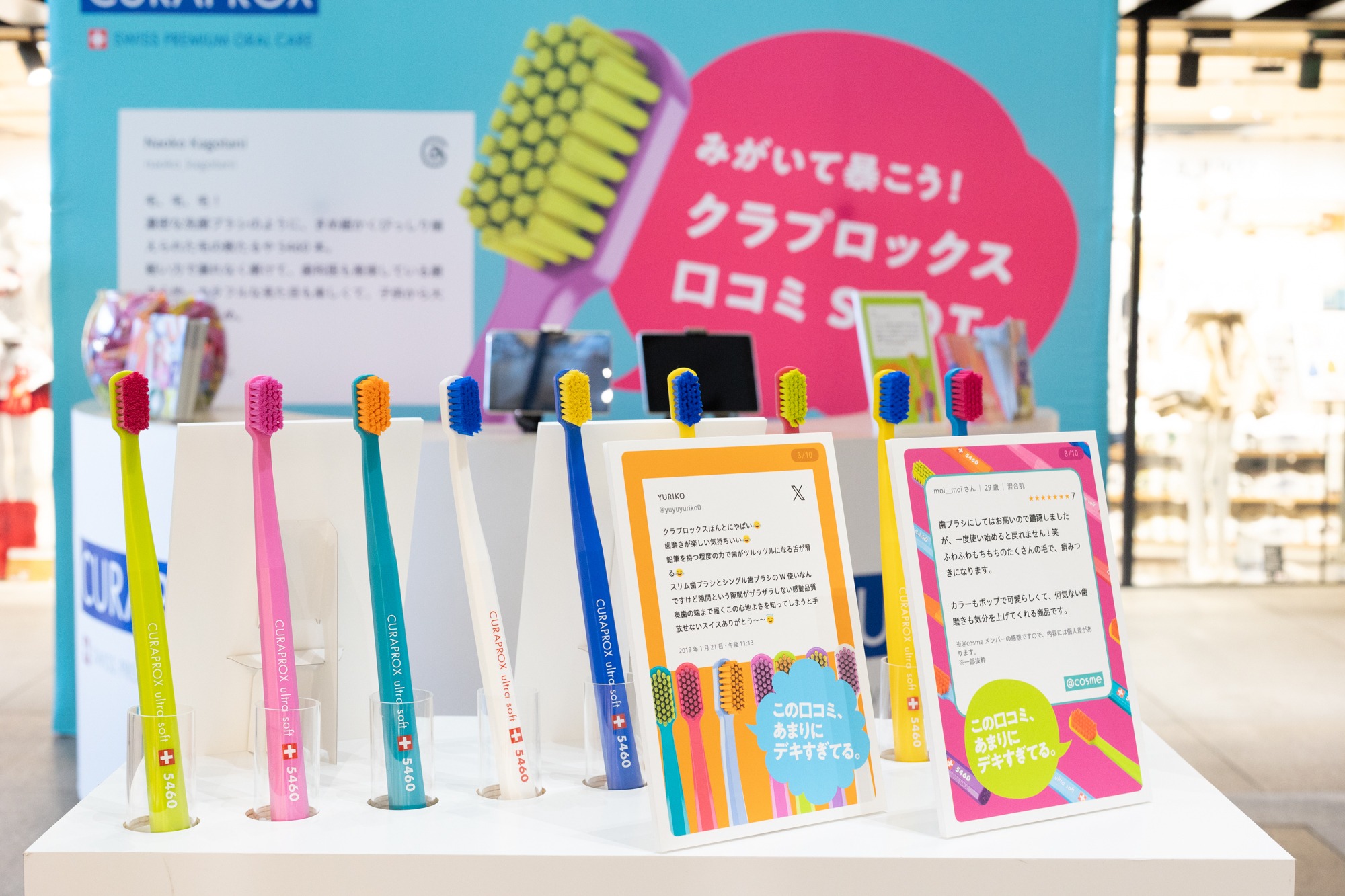 その使い心地はSNSでも話題に! 歯科衛生士をはじめとする歯科関係者からの評価も高く、口コミを検証する体験型イベント「みがいて暴こう!“クラプロックス”口コミSPOT」も開催されました。デキすぎている口コミのイラストの展示や、ネット上のレビューだけで商品説明員が紹介を実演するなど、おもしろい出展がずらり。さらにユーザーの声だけで作られた歌「野生の口コミでできた歌」のWEBCMも公開され、注目を集めています。
