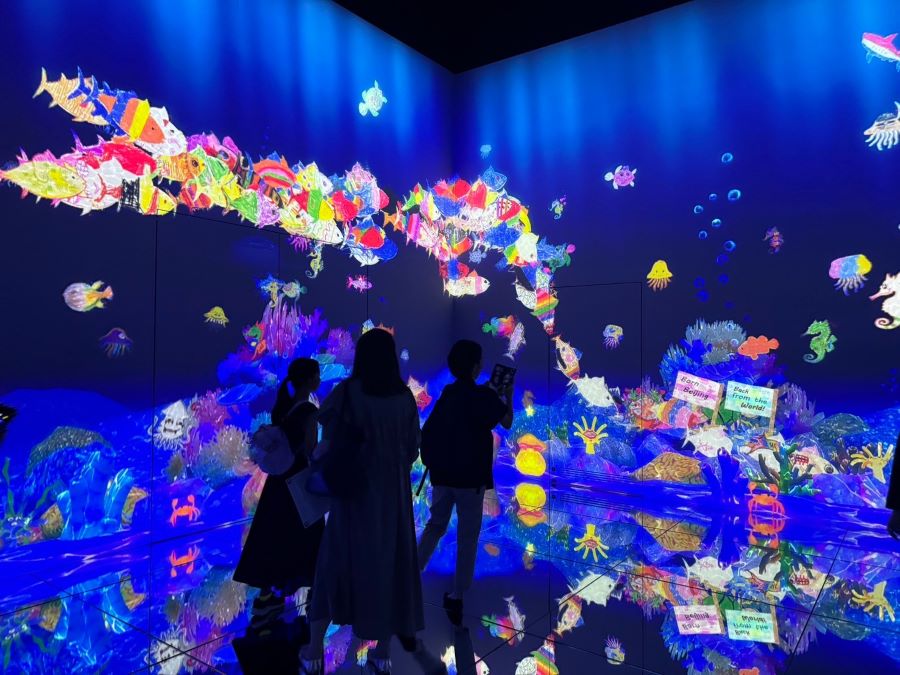 この夏は、森ビル主催で開催された「ヒルズ・ワークショップ フォー・キッズ2024」の一環で麻布台ヒルズの、森ビル デジタルアート ミュージアム:エプソン チームラボボーダレス にて「チームラボのメンバーと一緒にチームラボボーダレスの「ボーダレス」の意味を考えよう!」というプログラムも。チームラボの作品群をガイド付きで鑑賞しながら、参加者同士で「ボーダレス」というコンセプトについて話しあいました。