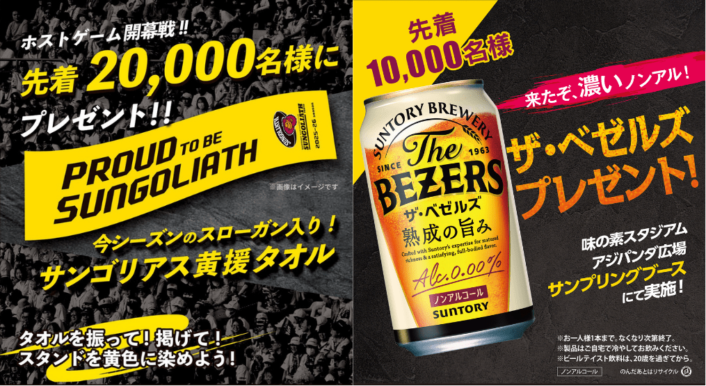 「サンゴリアス黄援タオル」を先着20,000名様にプレゼント!