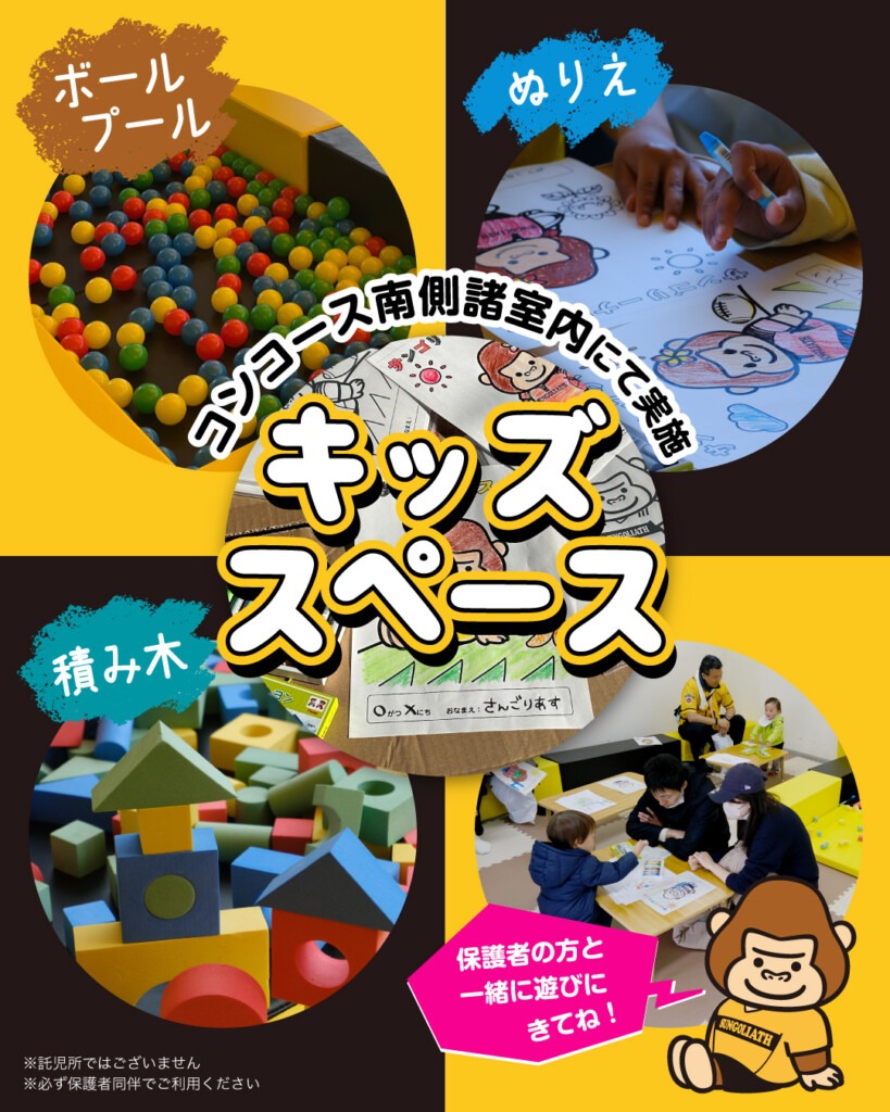 観戦中に疲れてしまったお子さまも安心。キッズスペースで遊びながら楽しい時間を過ごせます。小さなお子さま連れでも、安心してご参加いただけます!
