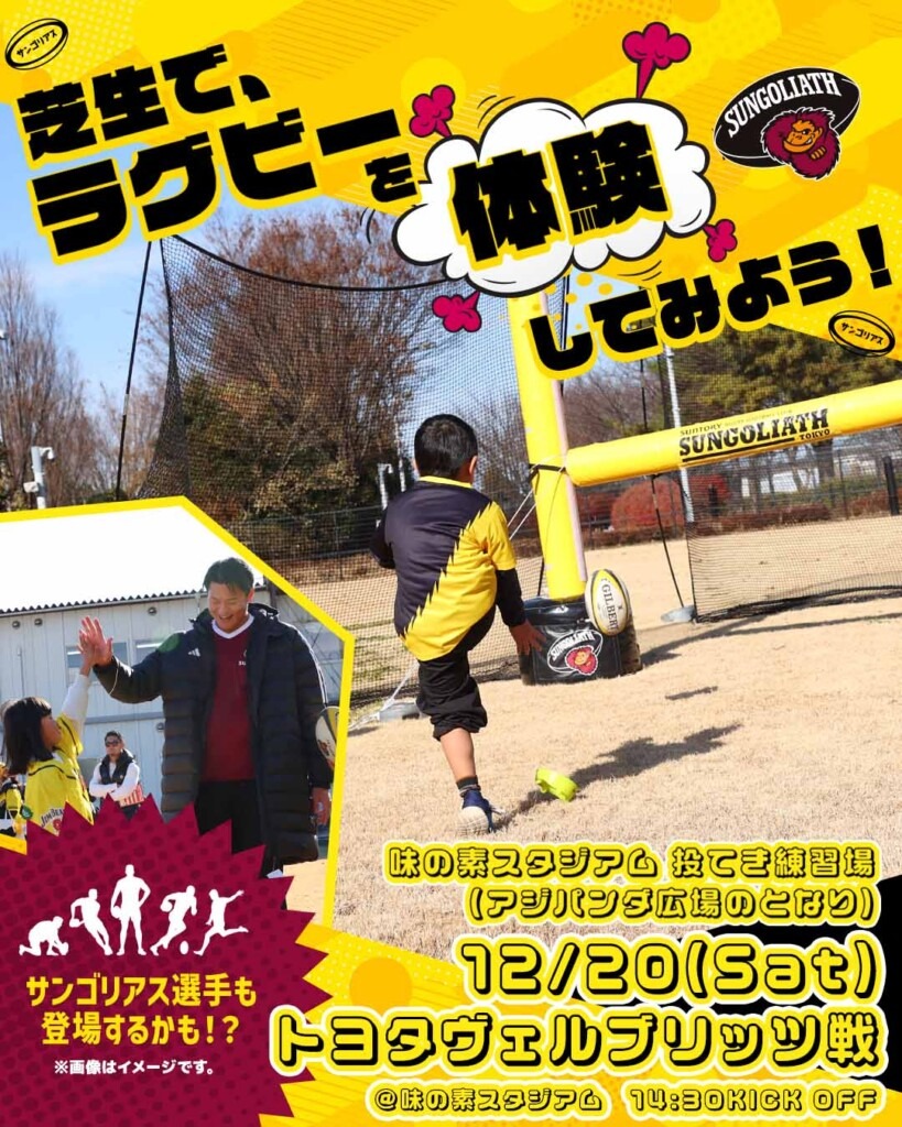 2025年12月20日(土)に味の素スタジアムで、東京サントリーサンゴリアスの熱い試合を観戦できる貴重な機会です。試合だけでなく、キッズスペースや子ども向け体験イベントも充実しているので、小さなお子さま連れでも安心して参加できます。