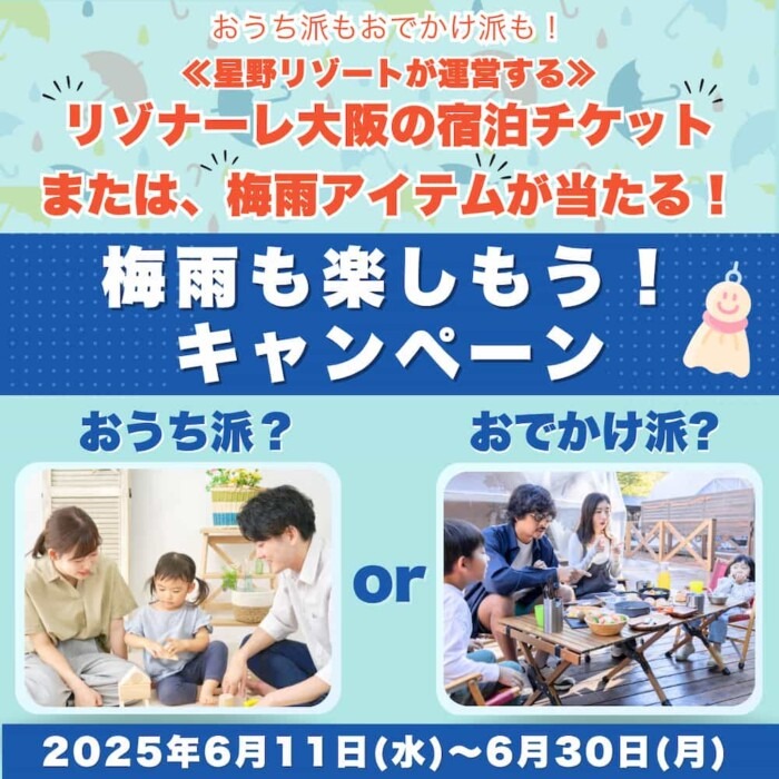 キャンペーン投稿をシェアすると、なんと星野リゾートが運営するリゾナーレ大阪の宿泊券が当たるチャンス!!
